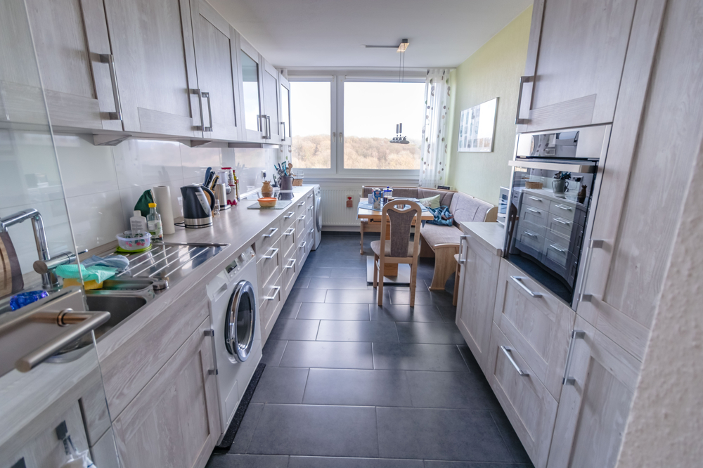 Diese gepflegte 4-Zimmer-Eigentumswohnung befindet sich in einem gepflegten Mehrfamilienhaus, welches im Jahr 1972 in massiver Bauweise errichtet wurde. Zwei Personenaufzüge bringen Sie bequem in die 17. Etage.